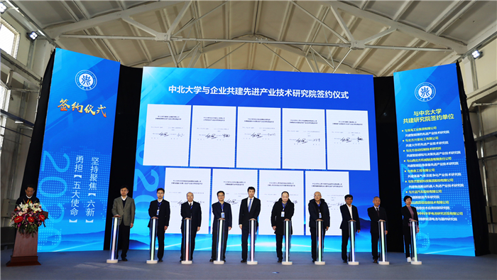 On December 23, 2020, the signing ceremony of the Institute of Advanced Industrial Technology was held at North University of China. Wang Yixin, Vice Governor of Shanxi Provincial People's Government, Shen Xingquan, Party Secretary of North University of China, and Xiong Jijun, President of North University of China attended the meeting, presided over by Zhao Guoguang, Chief of Staff of Shanxi Provincial Government, and Vice Governor Wang Yixin unveiled the plaque for the joint construction of the Institute of Advanced Industrial Technology.