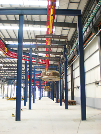 重型積放式懸掛輸送機(jī)是我公司定型優(yōu)質(zhì)產(chǎn)品。其系統(tǒng)主要由驅(qū)動(dòng)裝置、張緊裝置、軌道系統(tǒng)、牽引鏈條、承載車(chē)組及載荷梁等組成。該輸送系統(tǒng)已在工程機(jī)械、冶金等行業(yè)得到成功應(yīng)用,獲得用戶一致好評(píng)。