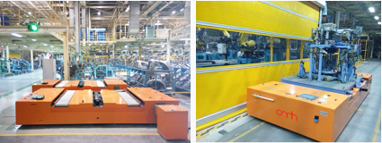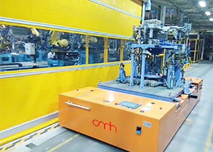 AGV與自動化輸送系統對接完成物料交換