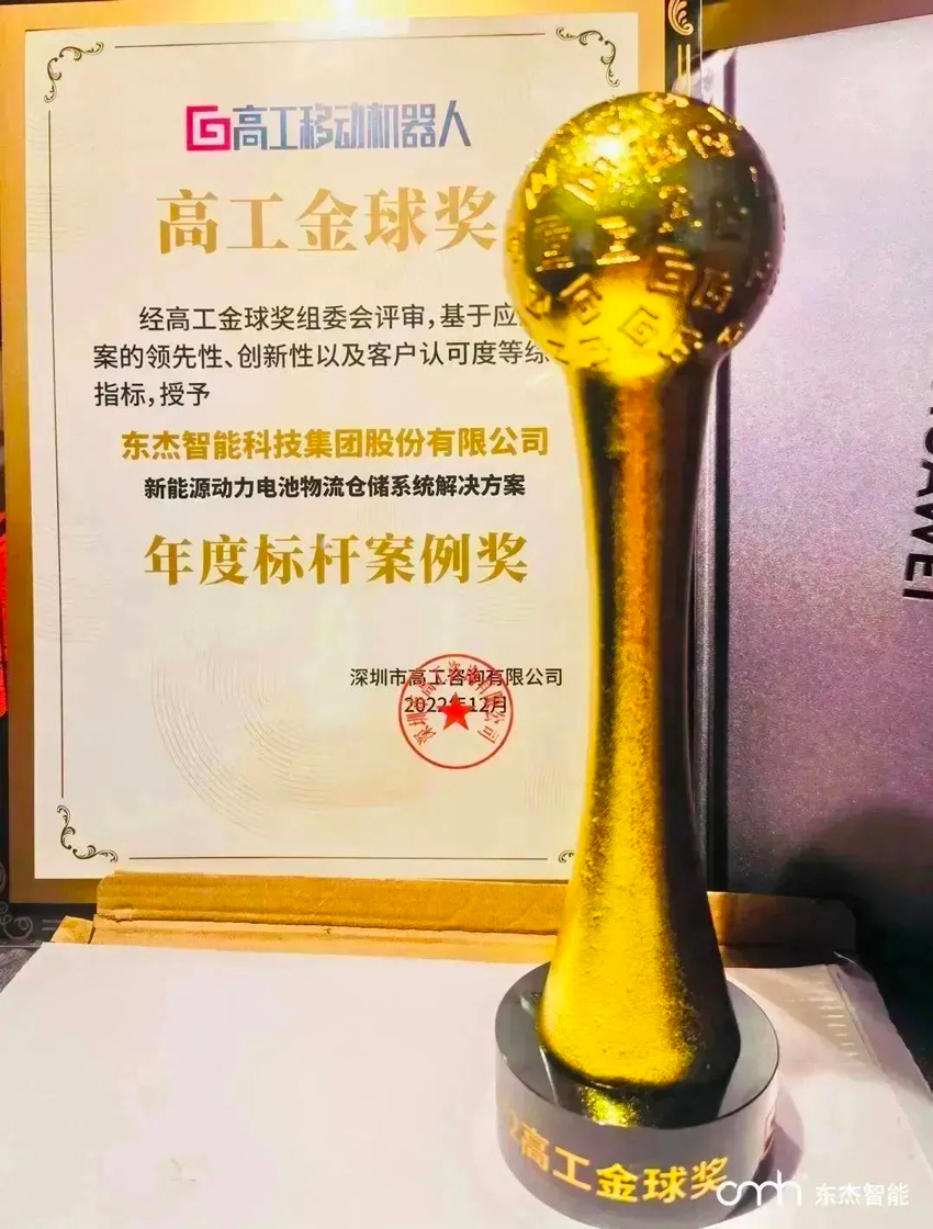 東杰智能憑借雄厚的系統集成實力、專業的解決方案、良好的市場口碑及先進的創新研發能力,榮獲“2022高工金球獎—鋰電行業年度標桿案例獎”。